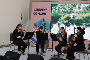 지난 19일(수) 본교 제2창학캠퍼스 중앙도서관 1층 로비에서 ‘숙명문화재단과 함께하는 신입생 환영 도서관 음악회’가 열렸다. 본교 발전협력팀과 중앙도서관이 주관한 해당 음악회는 본교 음대 학우들의 실내악 앙상블과 초대가수 무대로 구성됐다. 본교 이형진 대외협력처장은 “신입생이 가장 먼저 방문하는 곳이 도서관이라 생각했다”며 “에너지를 전달하고 새로운 시작을 응원하기 위해 음악회를 마련했다”고 설명했다. 조선혜(제약 77졸) 숙명문화재단 이사장과 본교 문시연 총장의 축사로 음악회의 시작을 알렸다. 축사에서 조 이사장은 “도서관이 학