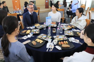 지난 22일(금) 본교 제2창학캠퍼스 백주년기념관 한상은라운지에서 ‘슬로베니아와 함께하는 천원의 아침밥’ 행사가 열렸다. ‘총장님과 함께하는 가을 문화여행’의 3번째 시리즈인 해당 행사에선 아침 식사와 특강이 진행됐다. 약 100명의 학우에게 호밀빵, 꿀, 버터, 사과로 이뤄진 슬로베니아 전통 아침 식사와 천원의 아침밥이 제공됐다. 임유민(한국어문 23) 학우는 “호밀빵에 슬로베니아 꿀을 곁들어 먹었는데 굉장히 독특하고 맛있었다”고 소감을 말했다. 숙명통역봉사단이 통역을 맡은 특강엔 예르네이 뮐러 주한 슬로베니아 대사와 박진 어반비