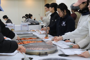 지난 4일(화) 본교 제1캠퍼스 새힘관 앞에서 ‘김치 페스티벌-숙명사랑 김장나눔’ 행사가 열렸다. 이번 행사는 교내 구성원들의 공동체 정신 실천을 위해 개최됐다. 진행을 담당한 본교 김연희 학생지원센터 대리는 “숙명 구성원이 함께 김치를 담그는 시간을 통해 나눔의 의미를 되새겼으면 좋겠다”고 말했다. 당일엔 본교 문시연 총장, 교무위원을 포함한 약 20명의 직원과 약 50명의 봉사자 학우가 참여했다. 송정민(미디어 24) 학우는 “김장을 처음 해봤는데 주변 학우와 직원분들이 도와주셔서 수월하게 진행할 수 있었다”고 얘기했다. 이번